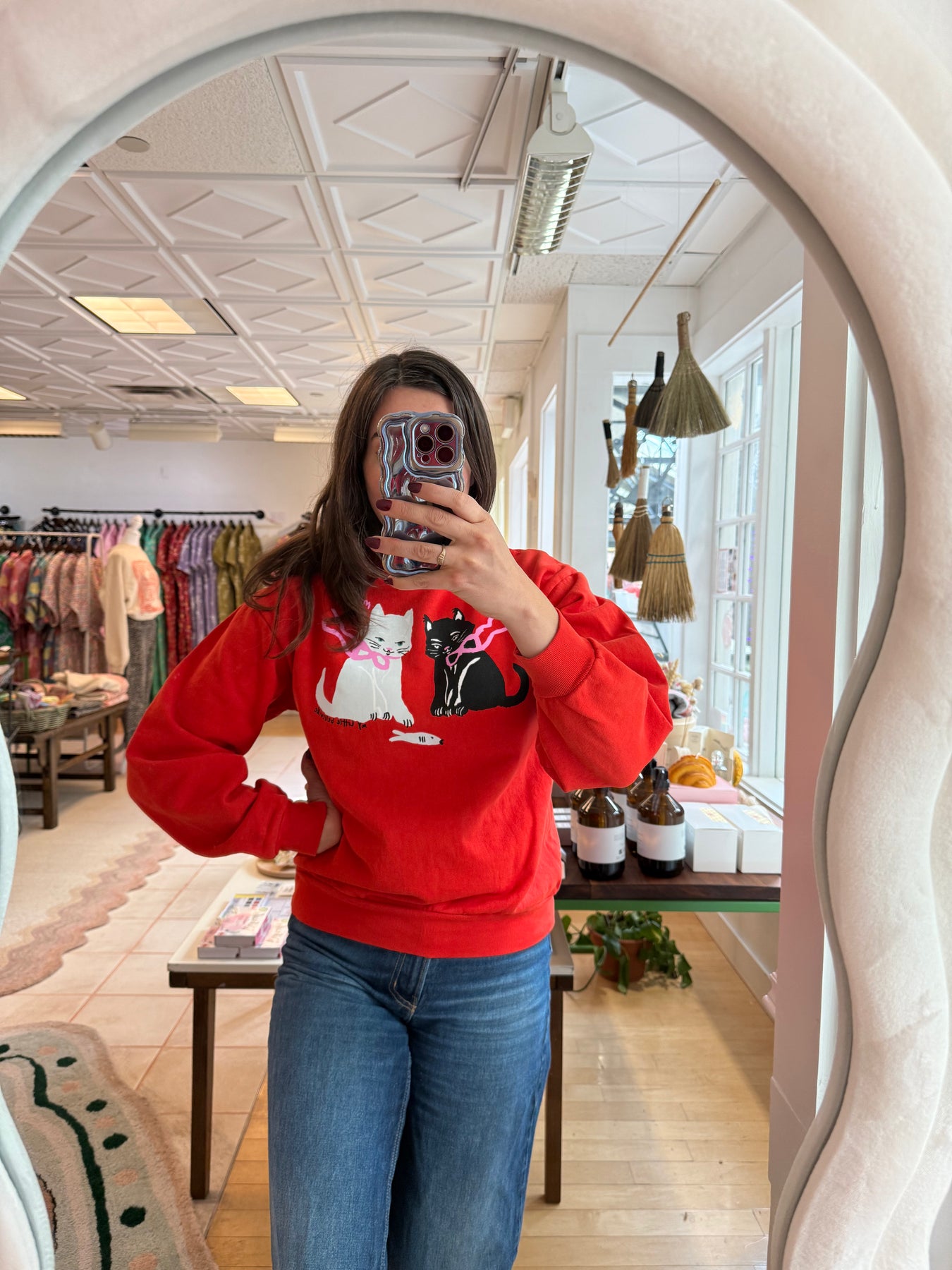 Designed by owner Michelle Christensen. Print was hand-drawn with ink and then digitally made into a print with color. Screen-printed onto fabric with non-toxic inks.